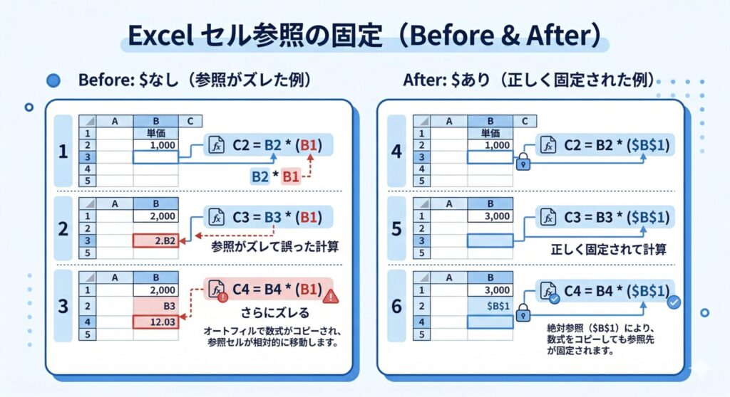 「数式をコピーしたら、参照がズレてしまった」——これは初心者が必ずぶつかる壁です。