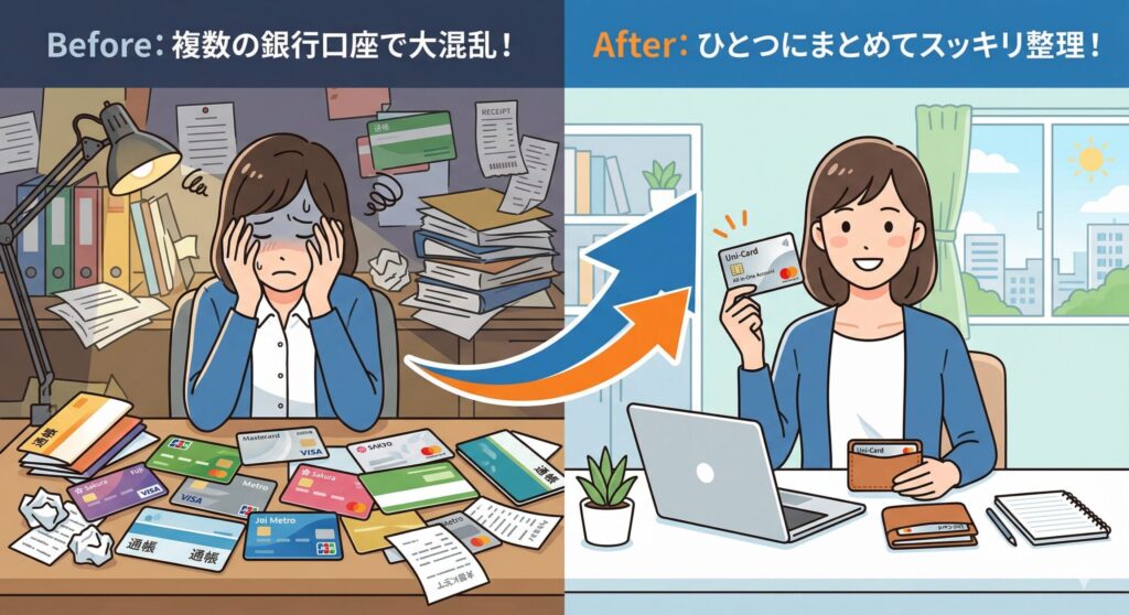 口座を減らすだけで、家計管理がグッとラクになる。これは意外と大きなメリットでした。