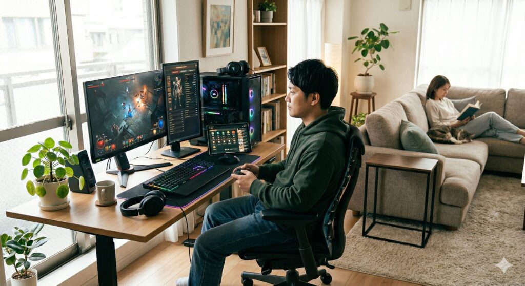 それでも帯域が広い(2Gbps)おかげで、回線の取り合いが起きにくいのがNURO光の強みです。iPadで4K動画を流しながら、私がPCでゲームをして、妻がWeb会議をしていても、お互いに「重い!」と文句を言わなくて済む状態が続いています。